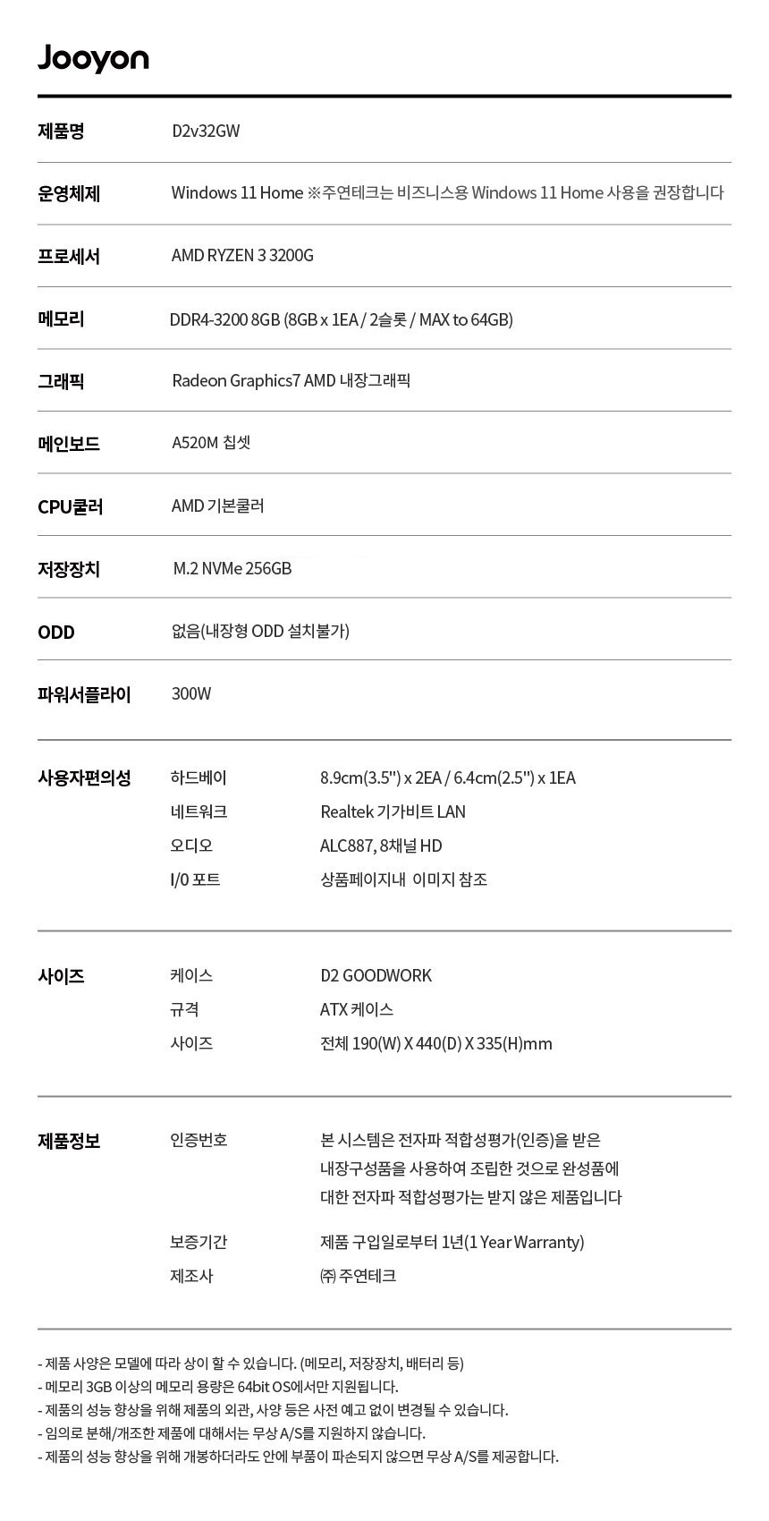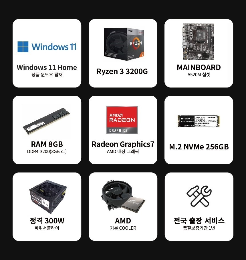 AMD 라이젠3 3200G 사무용 가정용 데스크탑 PC