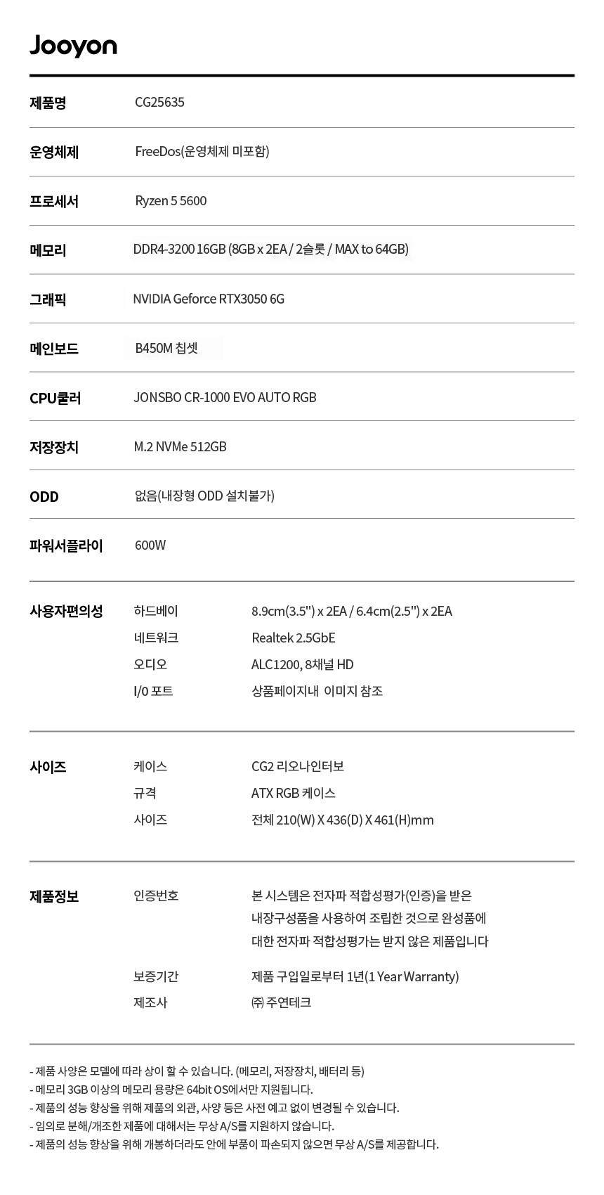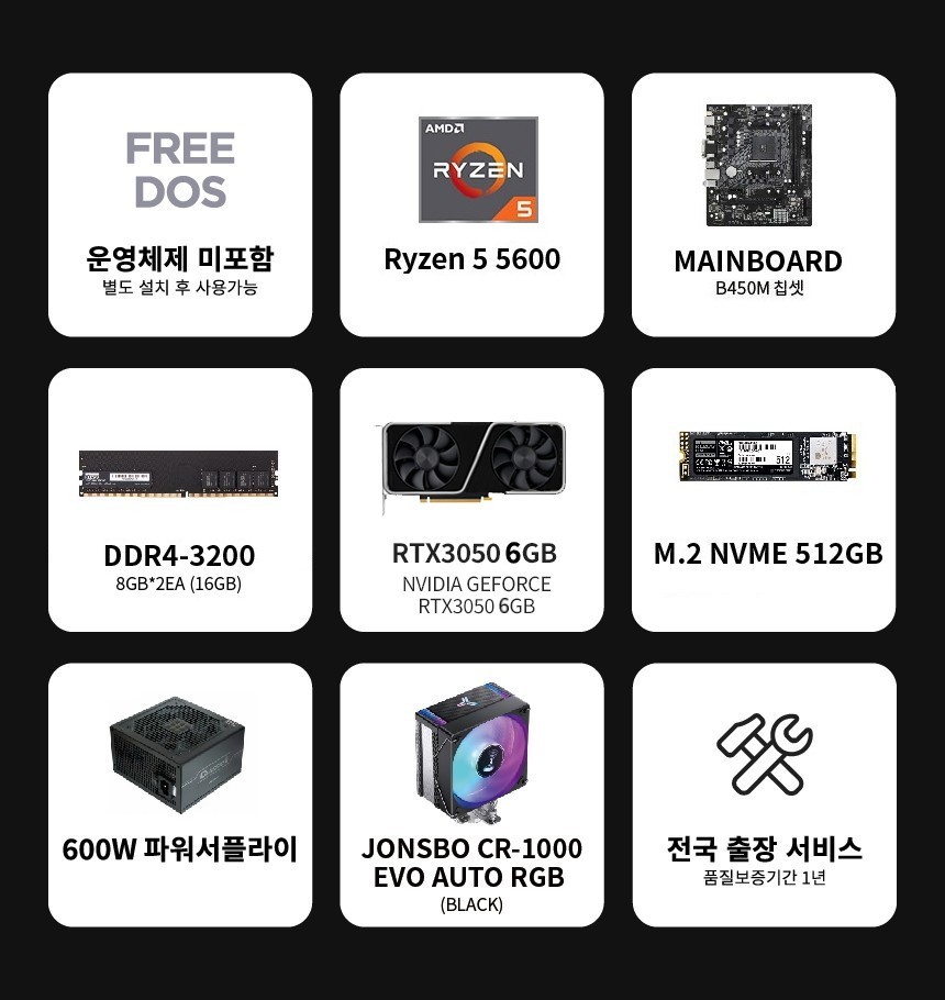 라이젠5 5600 RTX3050 게이밍 데스크탑 PC 컴퓨터
