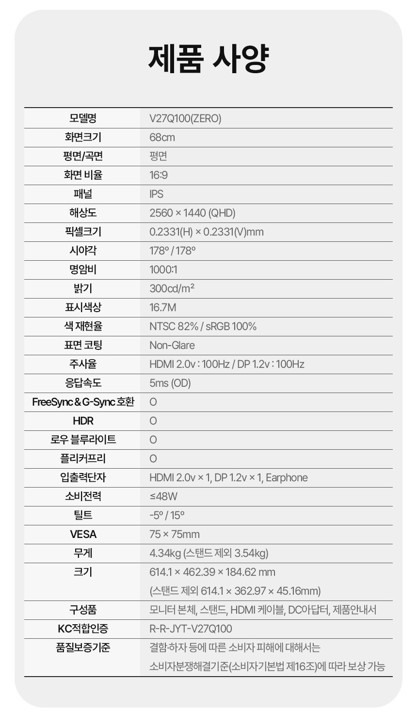 | KC 안전 인증 | [방송통신기자재] 적합등록 대상 품목으로 아래의 국가 통합인증 필함.인증번호 : R-R-JYT-V27Q100인증일자 : 2025-02-17(해당 인증 검사 정보는 판매자가 직접 등록한 것으로 등록 정보에 대한 책임은 판매자에게 있습니다.) |