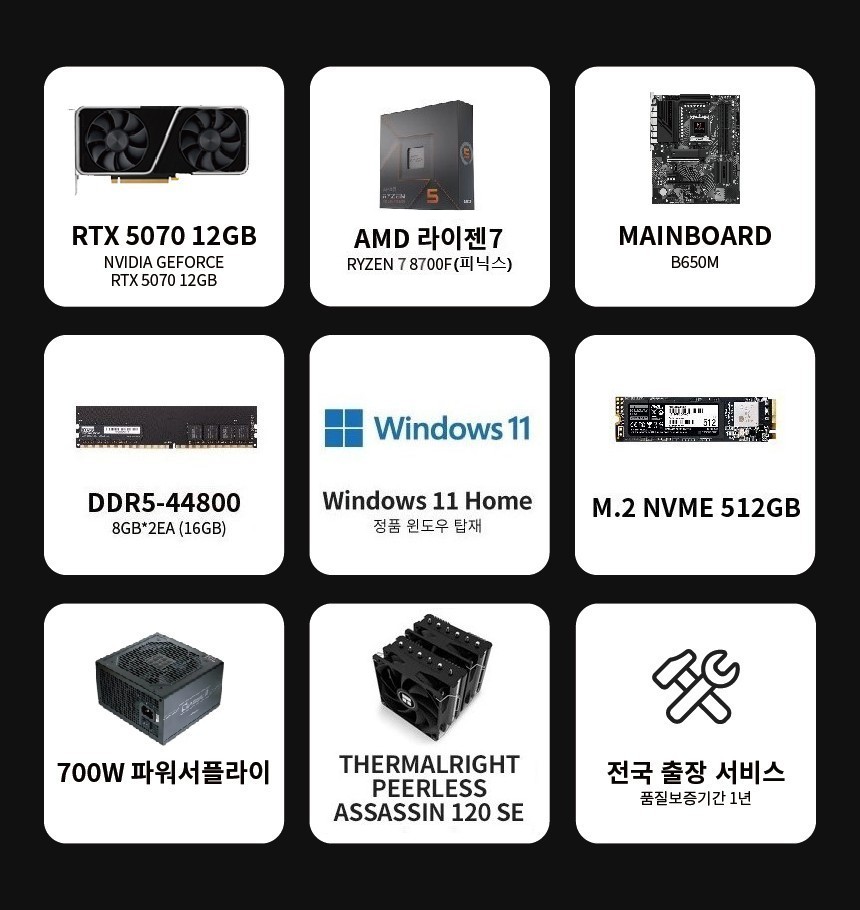 라이젠7 8700F RTX5070 데스크탑 PC 컴퓨터