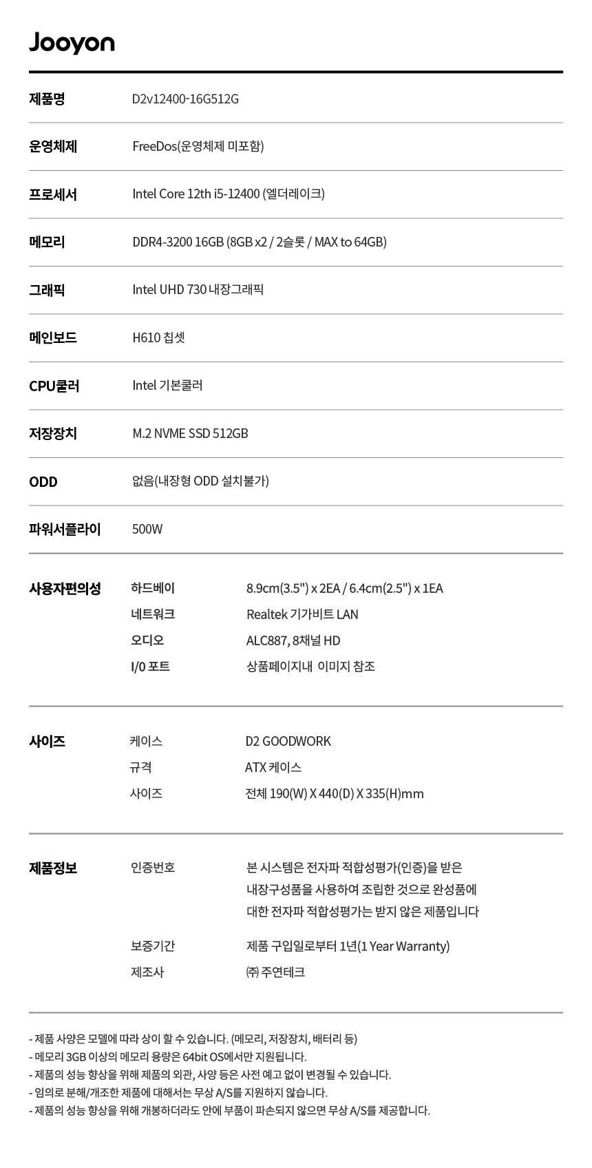 주연테크 굿워크 D2v12400-16G512G 블랙