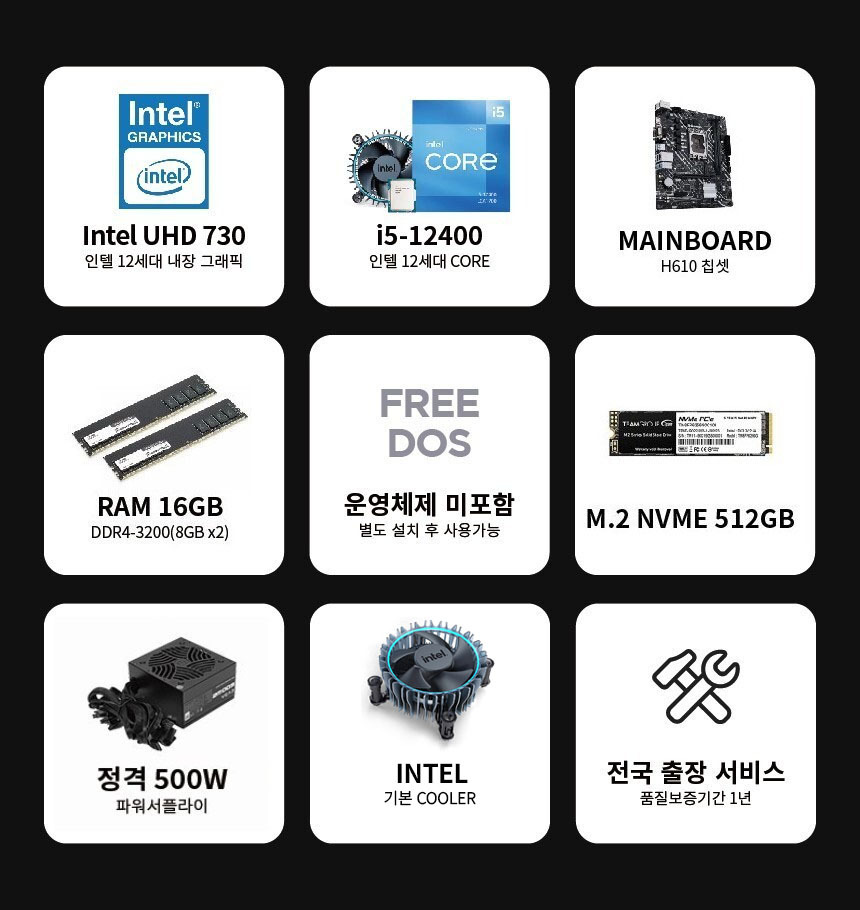 인텔 12세대 i5-12400 가정용 사무용 업무용 데스크탑 컴퓨터