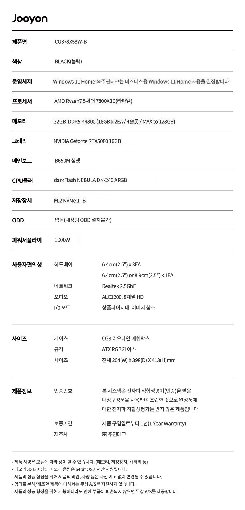 라이젠7 7800X3D RTX5080 데스크탑 PC 컴퓨터