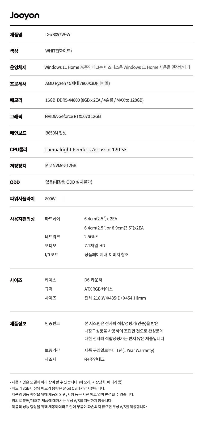AMD 라이젠7 7800X3D RTX 5070 고사양