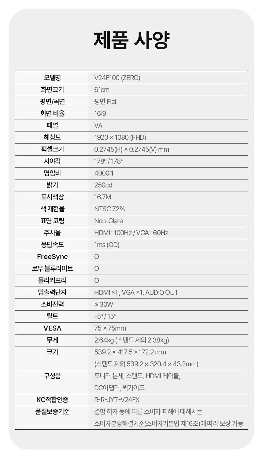 24형 / FHD / VA / 100Hz / 1ms(OD)