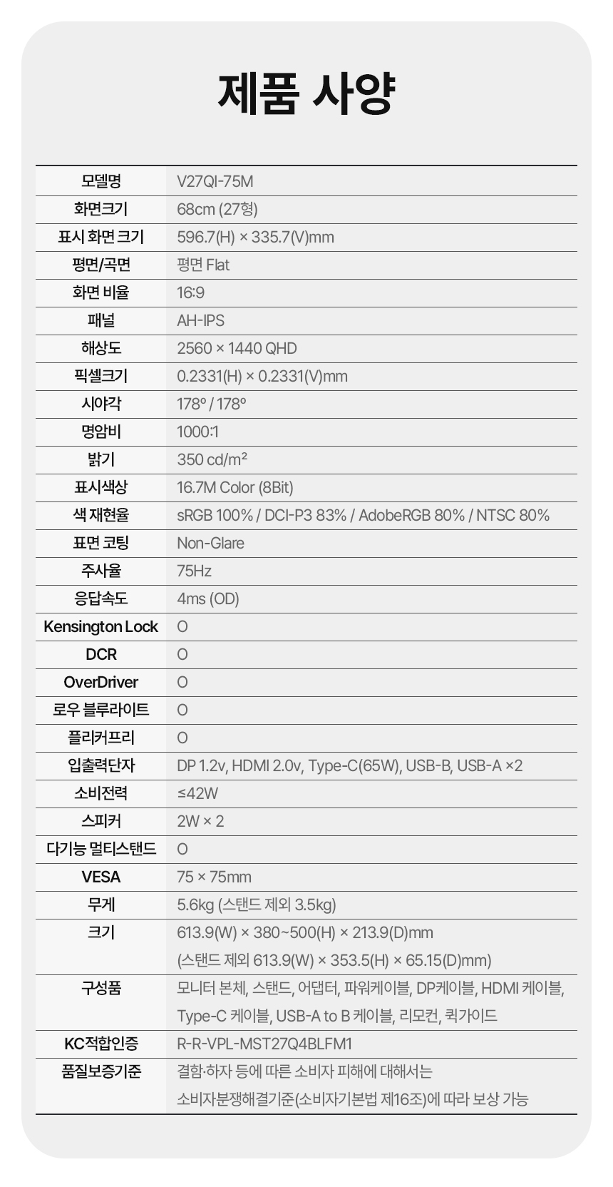 이미지 확대보기[중고-3개월 보증] 주연테크 V27QI-75M V2