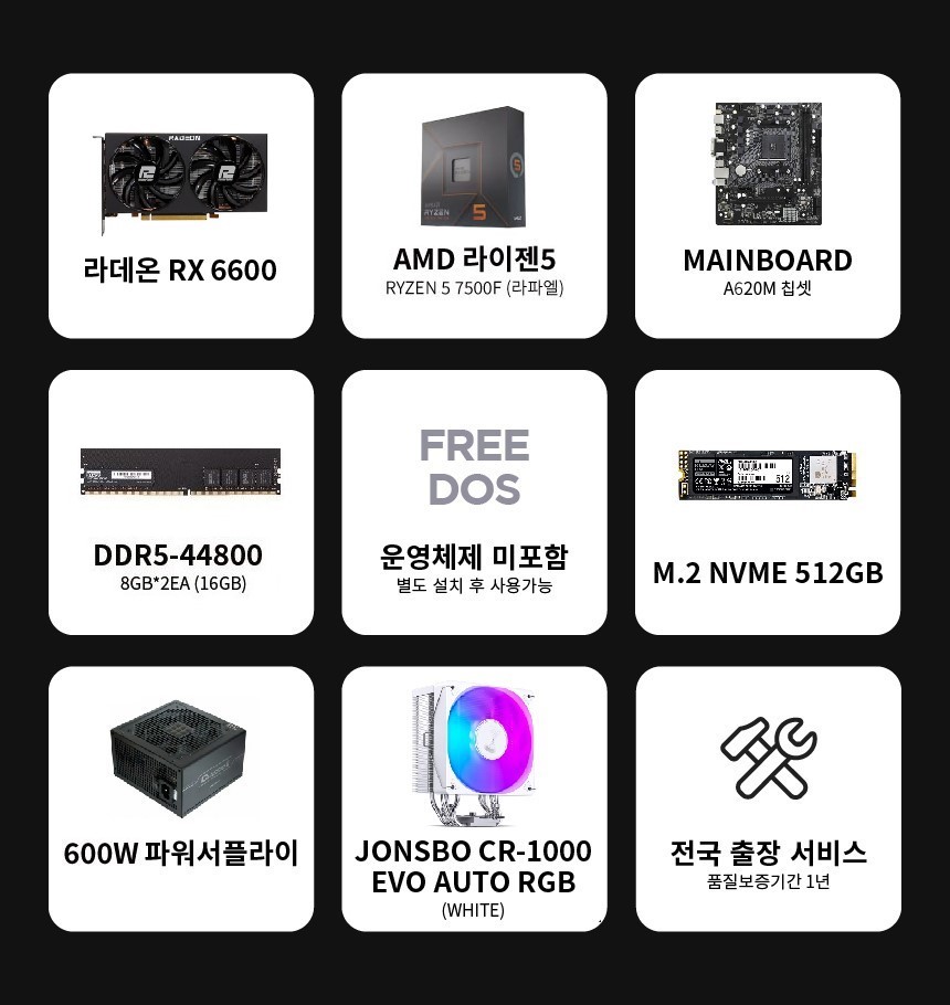 라이젠5 7500F 라데온 RX 6600 게이밍 데스크탑 PC