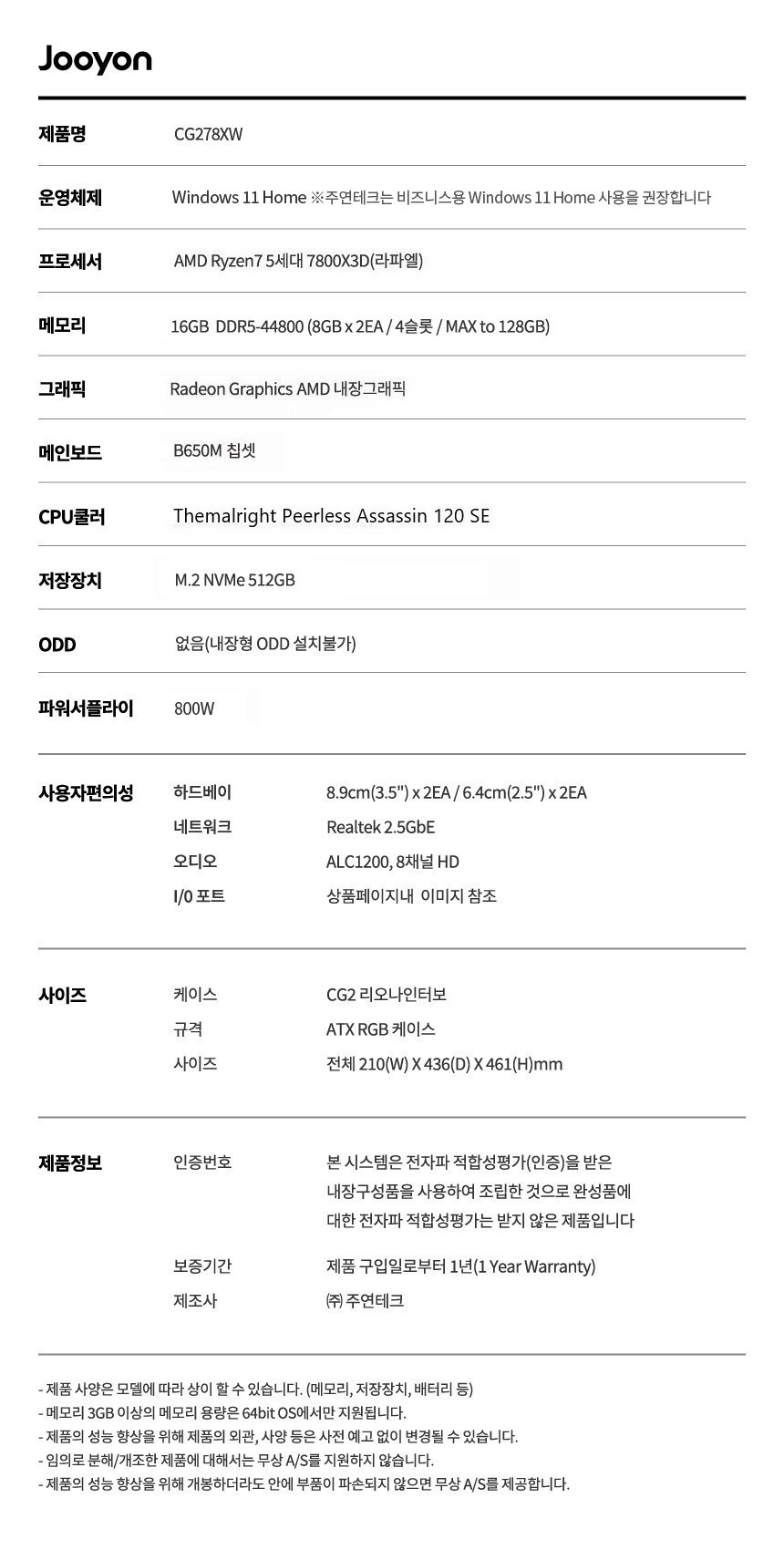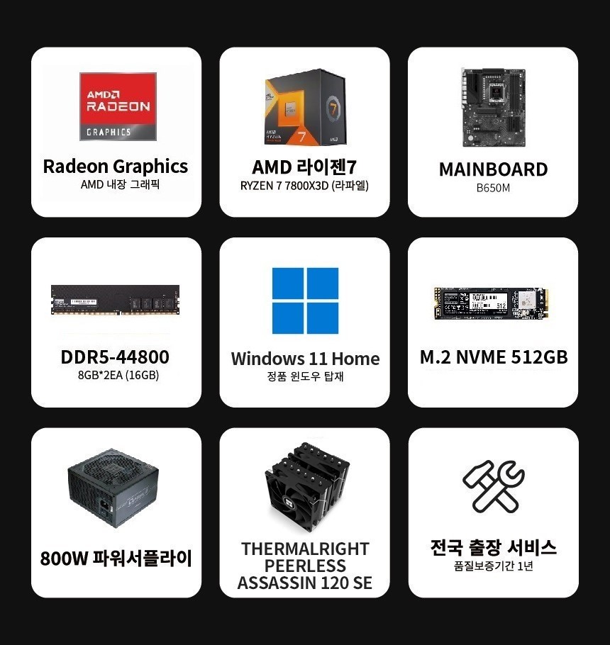 라이젠7 7800X3D 게이밍 데스크탑 PC 반본체 내장그래픽