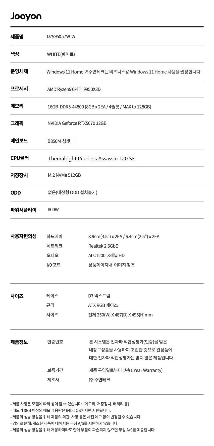 라이젠9 9950X3D RTX5070 데스크탑 PC 컴퓨터