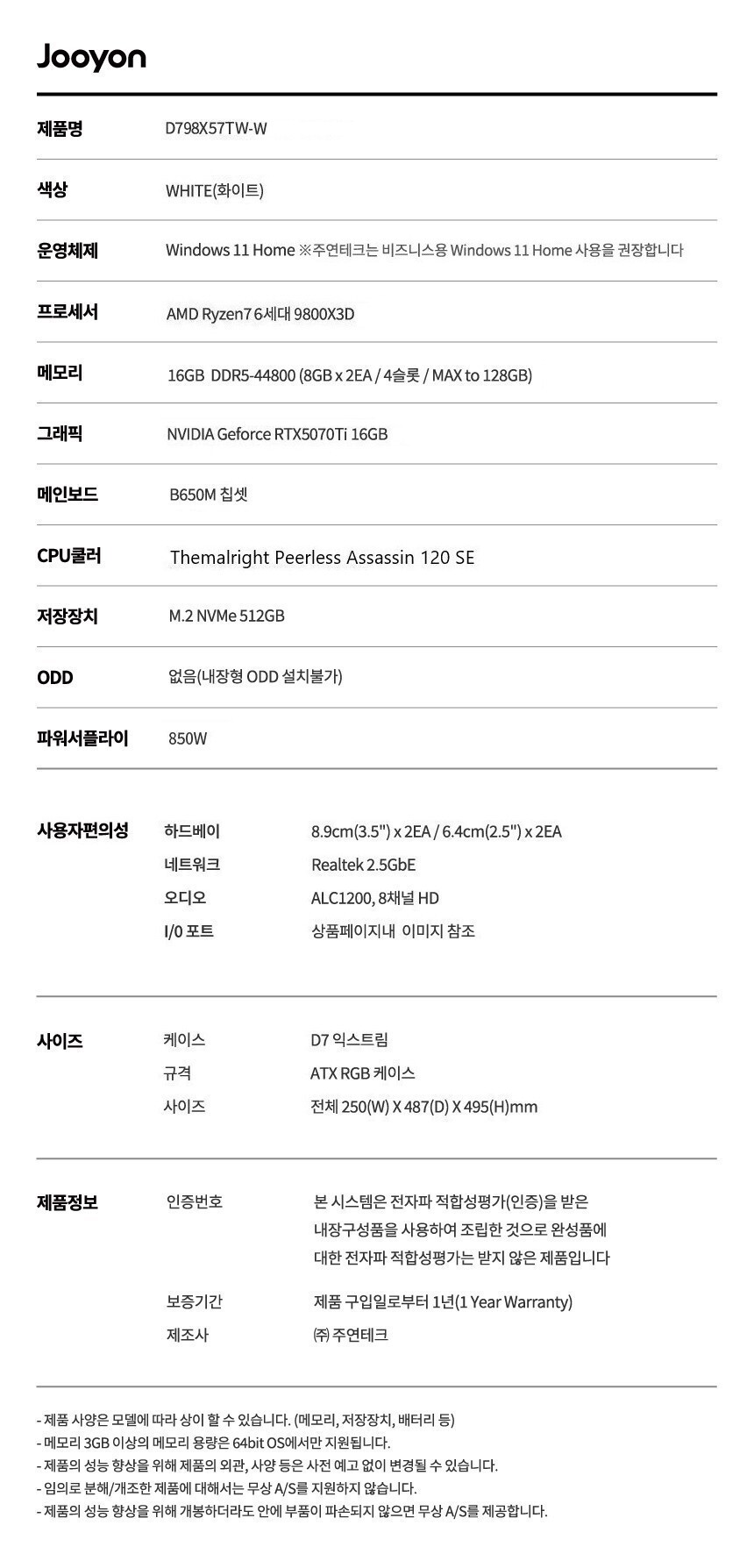 라이젠7 9800X3D RTX5070Ti 데스크탑 PC 컴퓨터