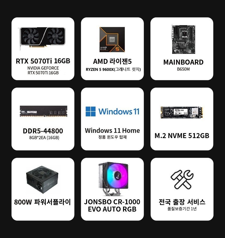 라이젠5 9600X RTX5070Ti 데스크탑 PC 컴퓨터