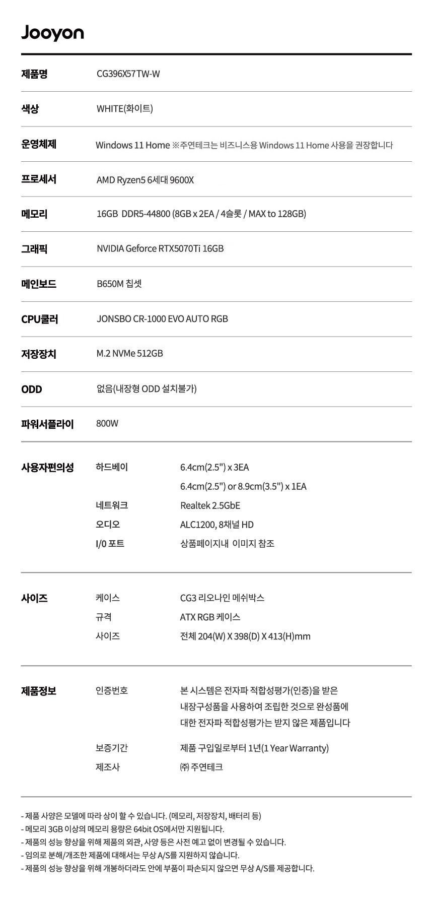 RAM변경 [DDR5 16G(8Gx2)]➤ (DDR5 32GB(16Gx2)로 변경 / +195,000원)