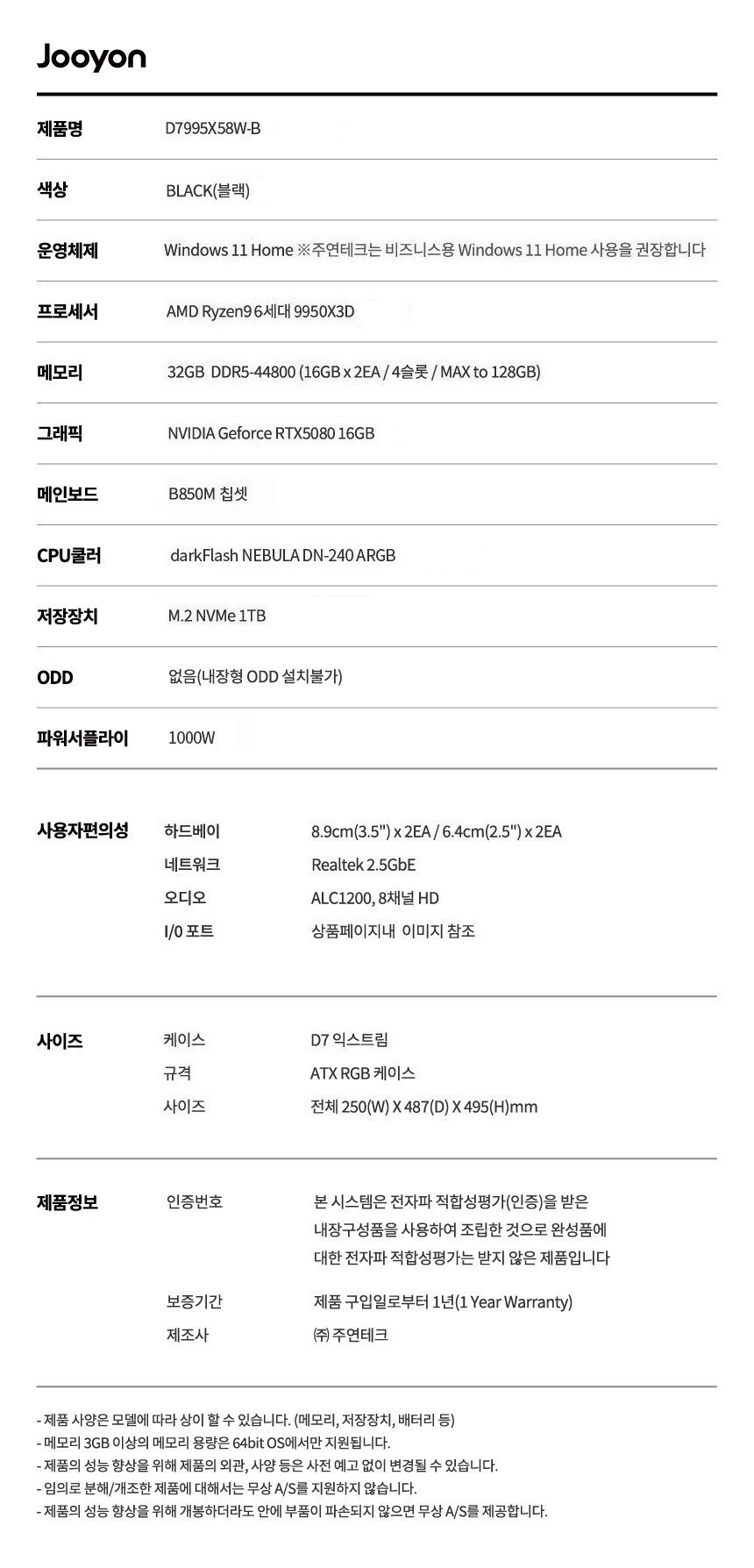 주연테크 익스트림 D7995X58W 블랙