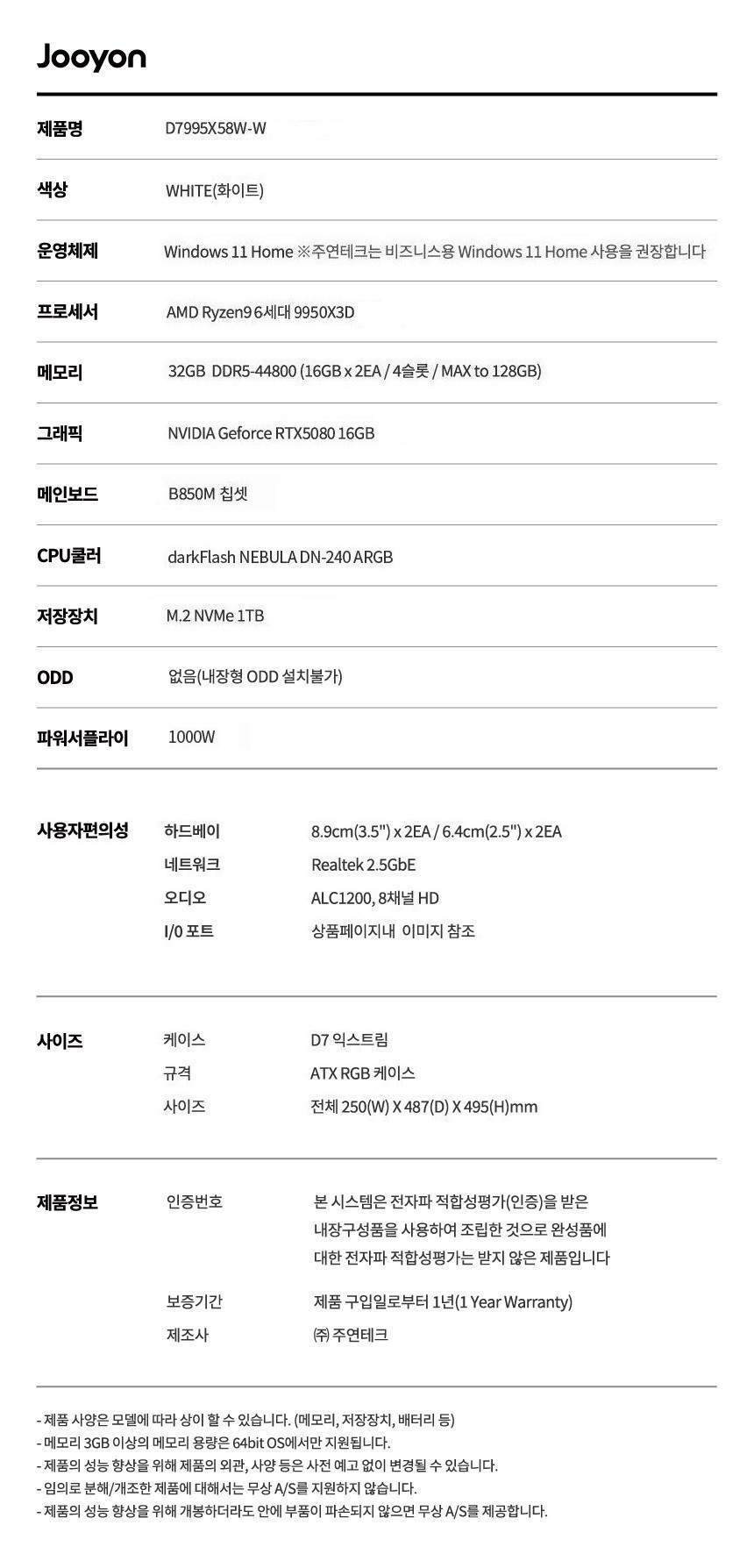 주연테크 익스트림 D7995X58W 화이트