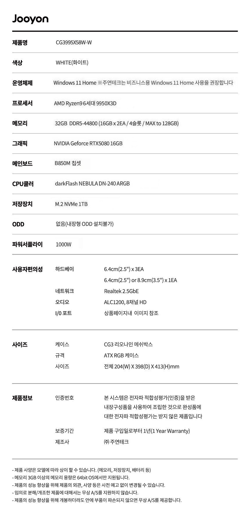 라이젠9 9950X3D RTX5080 데스크탑 PC 컴퓨터