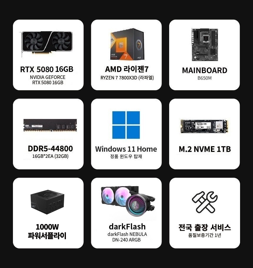 AMD 라이젠7 7800X3D RTX 5080 고사양