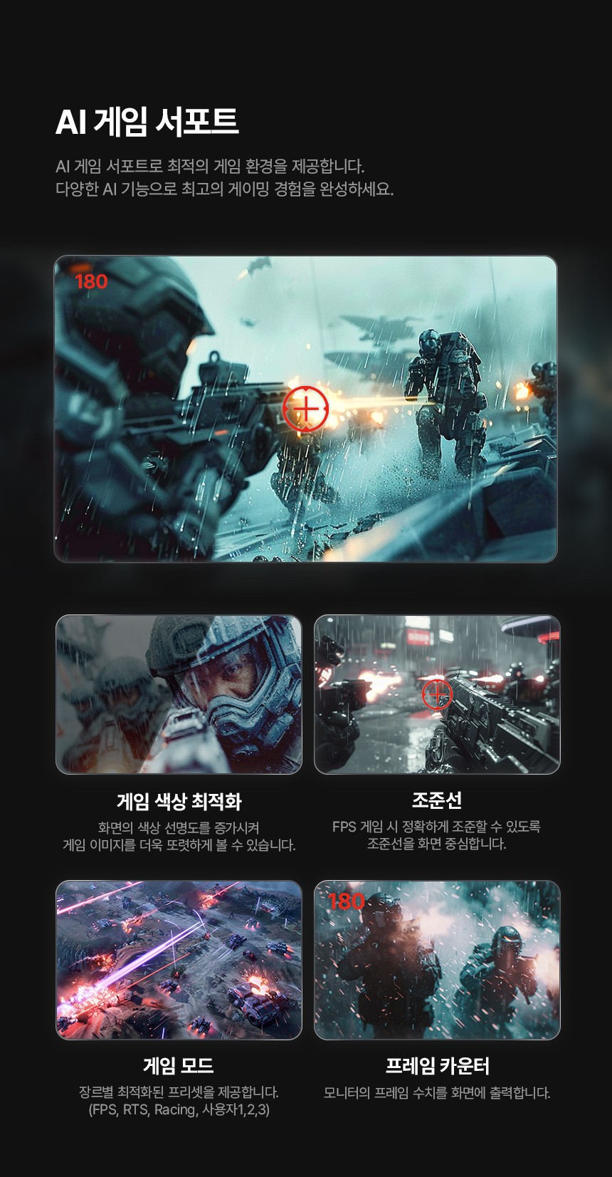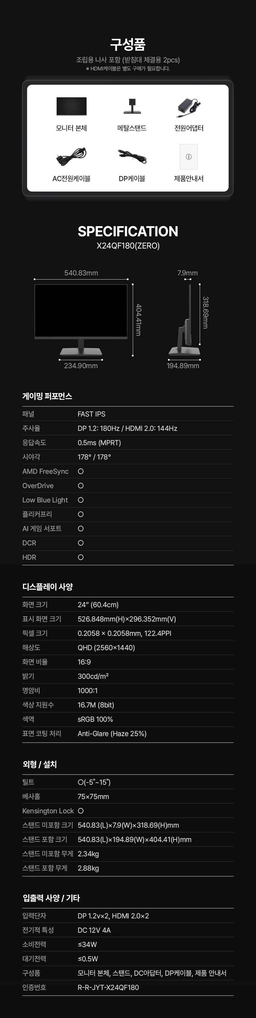 24인치 / 300cd / FAST IPS / QHD / 180Hz / HDR10 / AI 게임 서포트